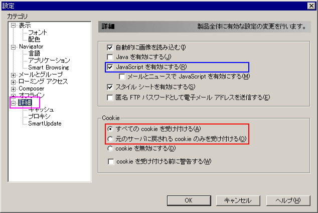以上の操作で CookieとJavaScriptの設定が適切に行われます。